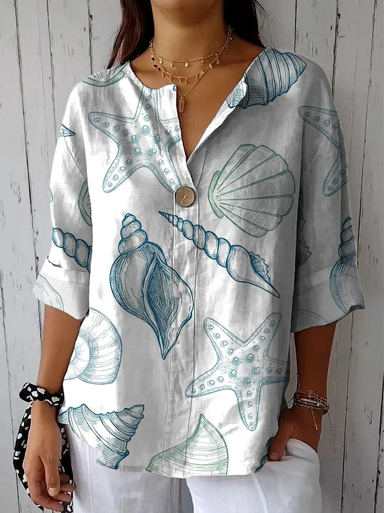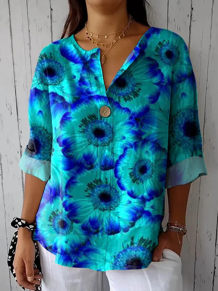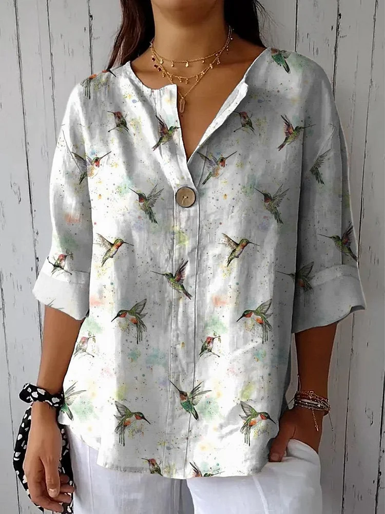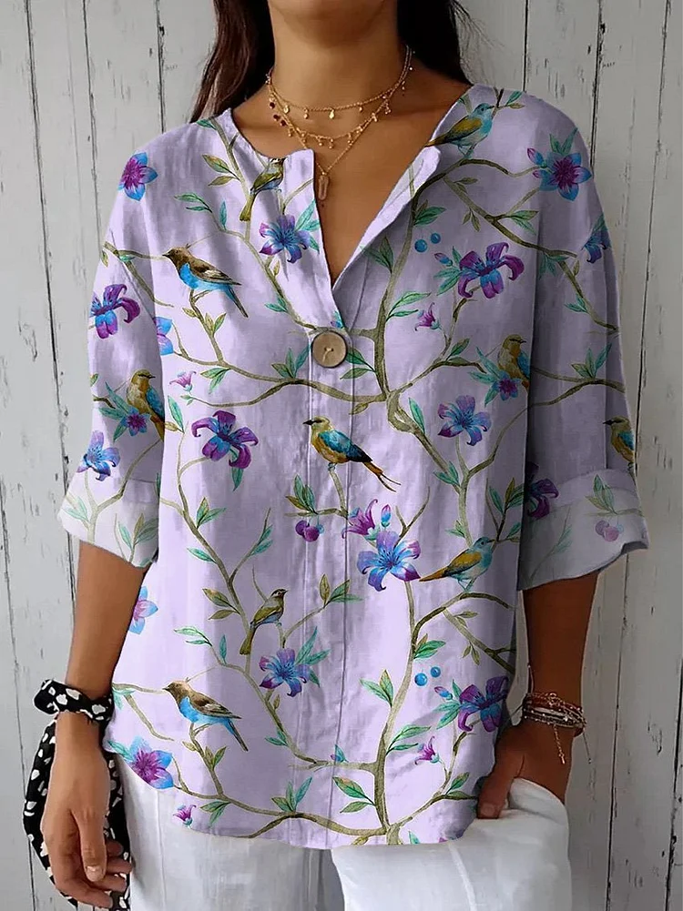 Women's Cotton and Linen Round Neck Printed Dress