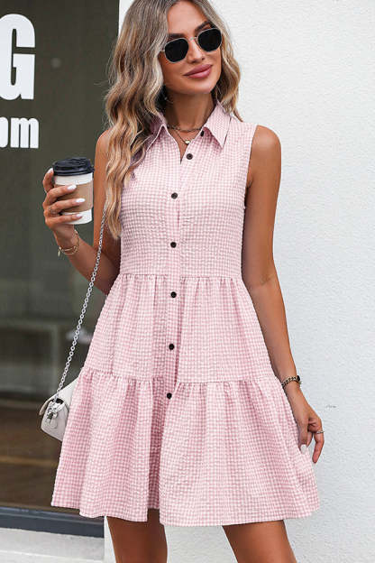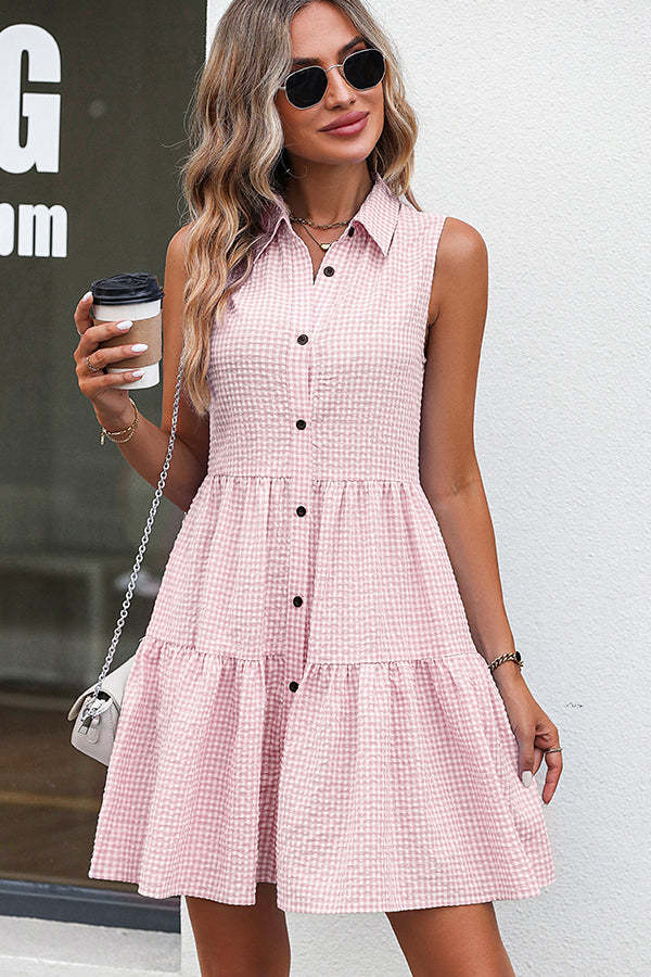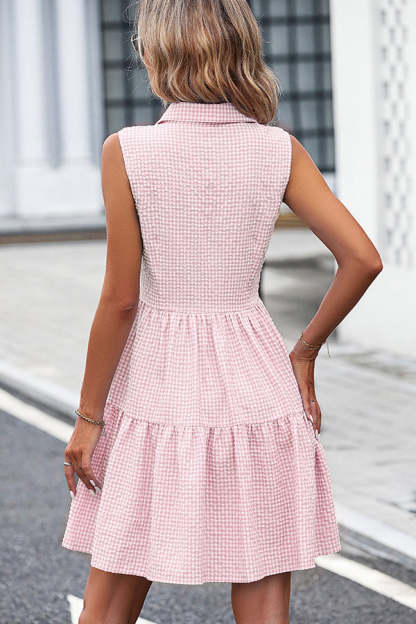 • Lapel Sleeveless Plaid Print Mini Dress