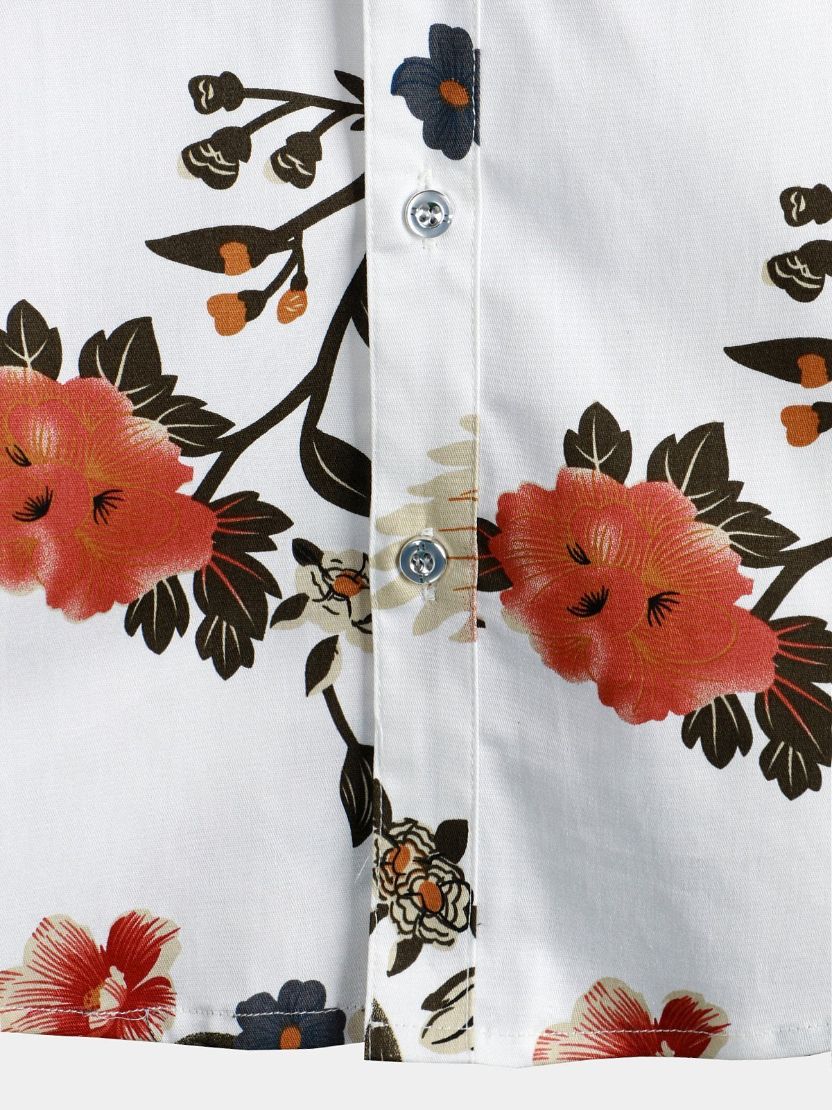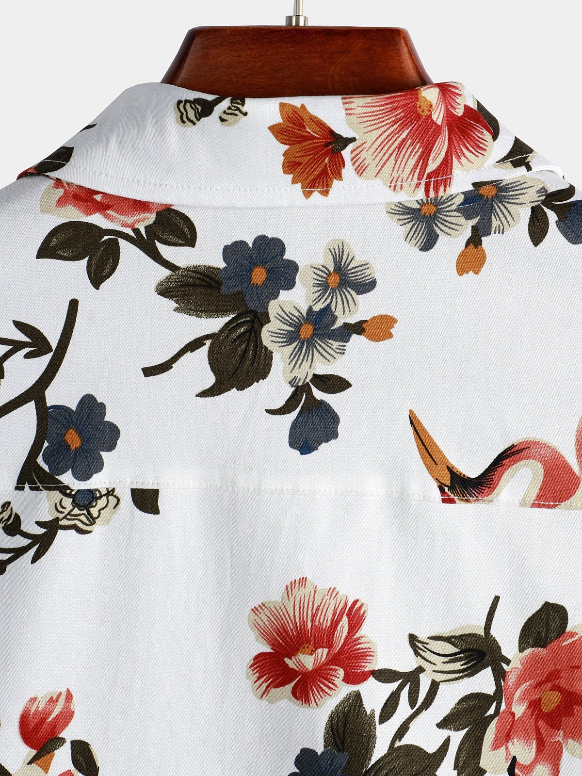 Men's Cotton Floral Casual Flower Print Hawaiian Button Up Beach Short Sleeve Shirt